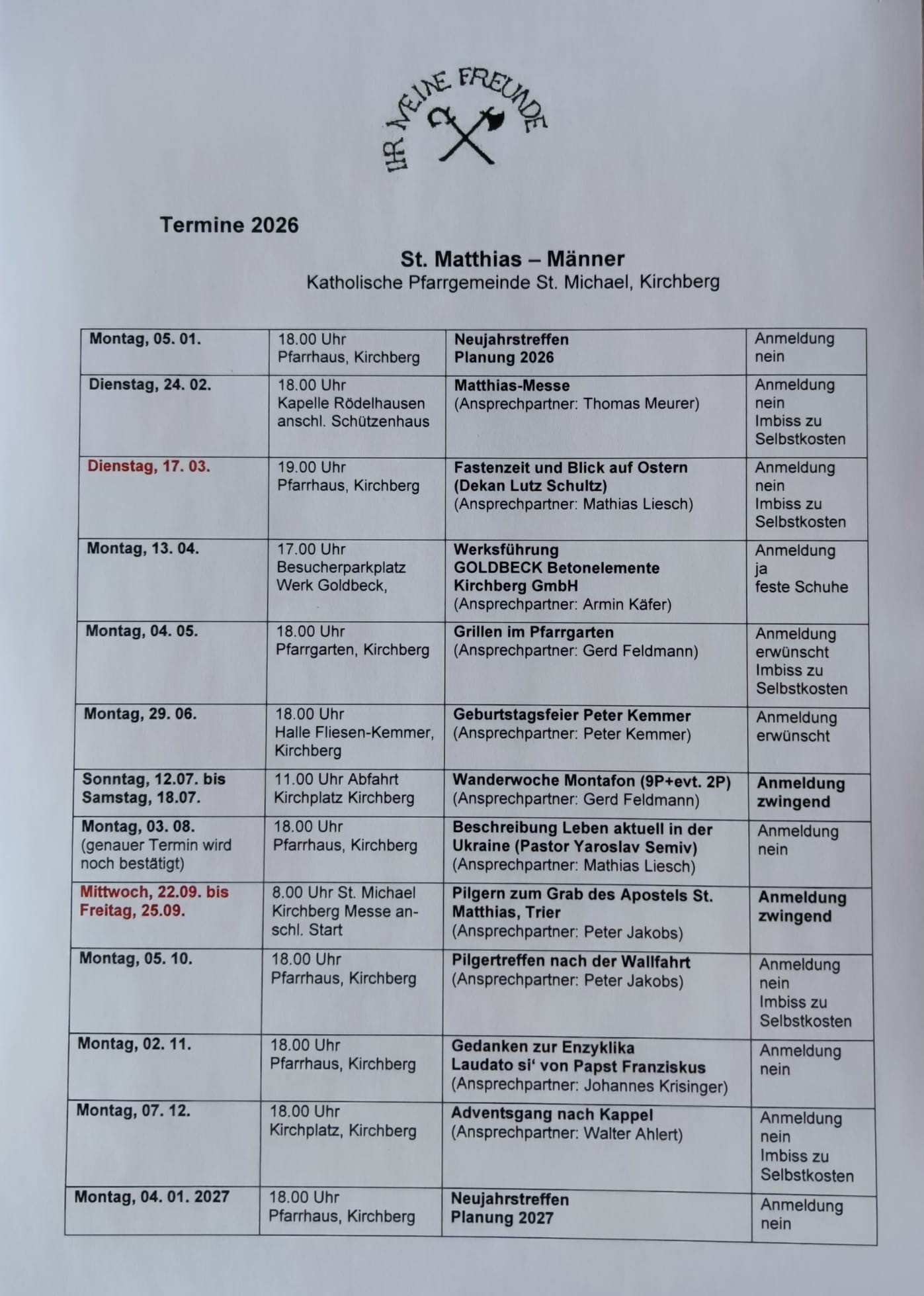 Seit 2006 hat sich aus unseren Treffen auch die jährliche, dreitägige Fußwallfahrt zum Grab unseres Trierer Bistumspatrons, des Hl. Apostels Matthias, gebildet.